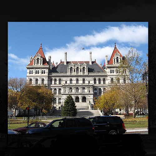 The location of New York State Capitol has been reported as having a spirit, ghost, or haunting.
